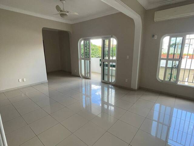 3 quartos com armários sendo 1 suíte, dependência completa de empregada, 3 banheiros com box blindex e armários, 1 lavabo, hall de entrada, sala de estar, sala de jantar, sacada, cozinha com armários e bancada de granito, área de serviço, piso de porcelanato, 2 ar condicionados e 6 ventiladores de teto.