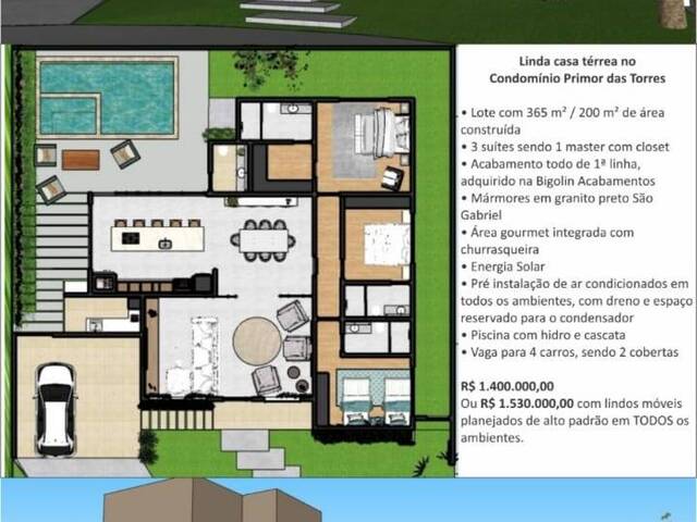 Casa com 3 suítes, sendo 1 Master com Closet.