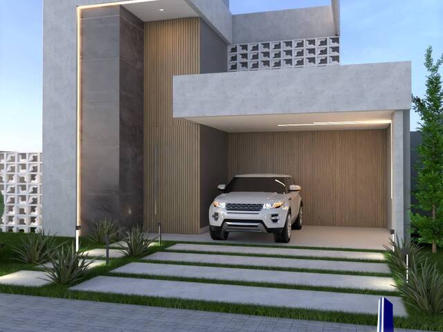 Casa com acabamento diferenciado com porcelanato de grandes formatos e iluminação.